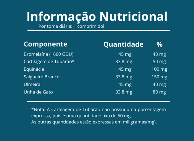 Boswellia 3%, Harpago 1,5%, Salgueiro Branco 1,5%, Ulmeira 1%, Cânfora 0,2%.