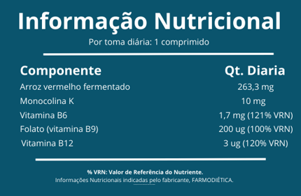 A Monacolina K é um composto secundário que resulta do processo de fermentação do arroz vermelho e que contribui para a manutenção de níveis normais de colesterol no sangue. Vários estudos em humanos, aos quais foram administrados produtos com arroz vermelho fermentado, com quantidades significativas de Monacolina K, demonstraram haver uma relação direta entre a sua toma e a redução dos níveis de colesterol total e colesterol LDL. A estrutura molecular da Monacolina K é semelhante à da lovastatina, pelo que o seu mecanismo de ação está relacionado com a inibição da enzima HMG-CoA redutase, tendo como consequência a diminuição da síntese endógena de colesterol.