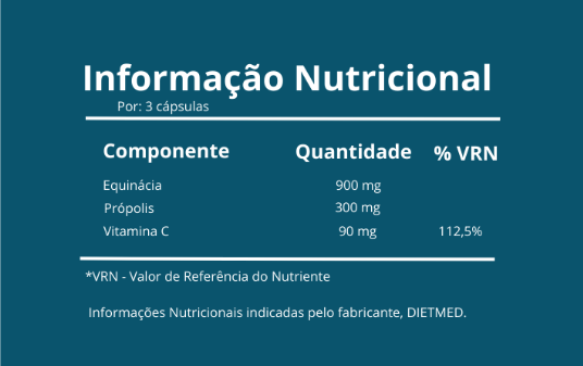 Equinácia (Echinacea purpúrea L.; extrato da raiz); Própolis; Gelatina; agente de volume: maltodextrina; Ácido L-ascorbico; Antiaglomerantes: sais de magnésio de ácidos gordos, dióxido de silicio .